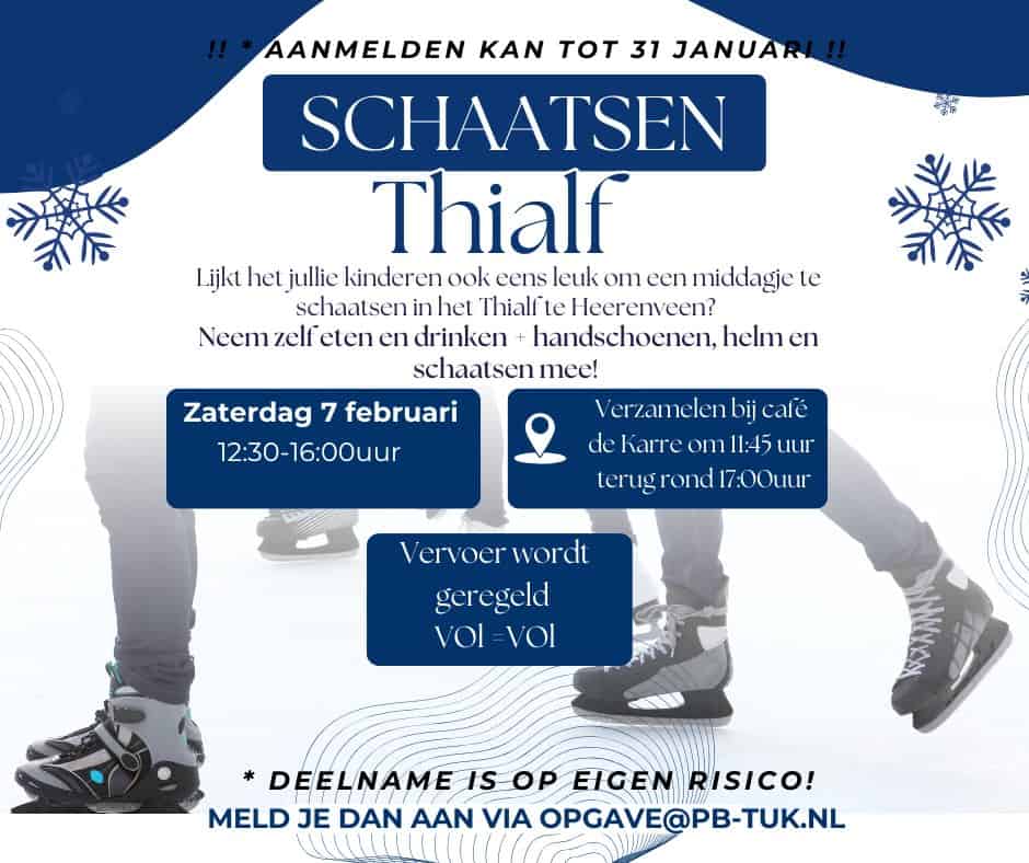 PB Tuk organiseert een middag schaatsen in het Thialf op zaterdag 7 februari!Β